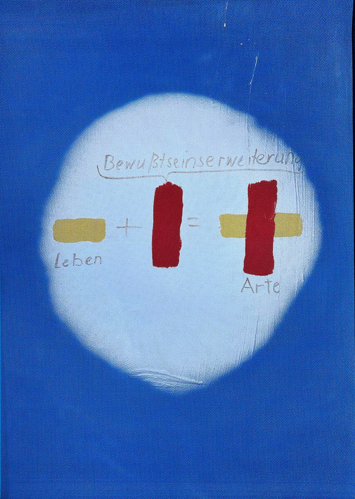 – Künstlerischer Schlüssel für jede Form von Kunst: **Leben + erweitertes Bewusstsein = Kunst** oder **alte Information + neue Information = Evolution**.